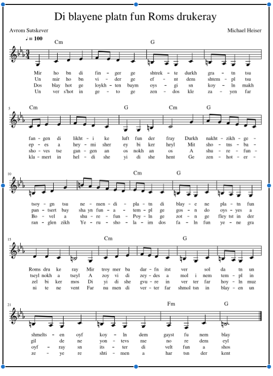 The poem was written in the Vilna Ghetto on 12th September 1943. This setting was composed in 2021 and sung at the Yiddish Open Mic Cafe Ghetto commemoration on 18 April 2021