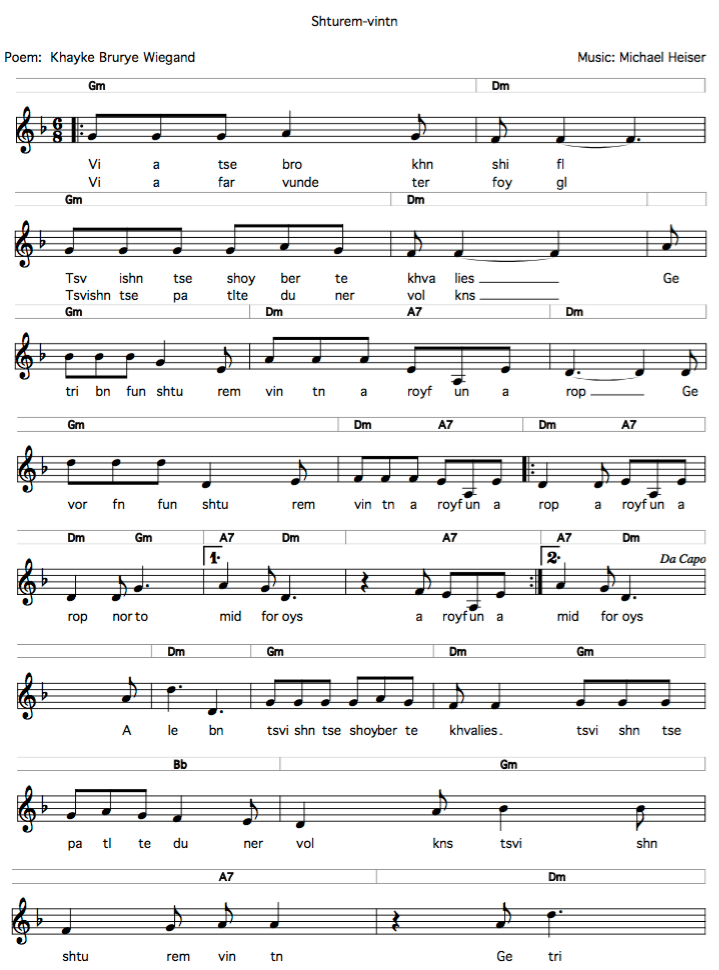 Tossed between stormy winds like a broken ship, I go to and fro. Poem by Khayke Beruriah Wiegand from her collection ‘Tsi hot ir gezen mayn tsig un andere lider’ (Have you seen my Goat and Other Poems)